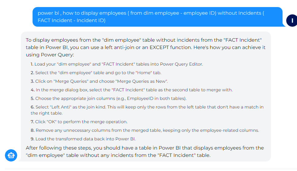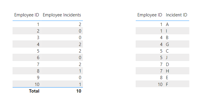 I need to count employees’ ID who didn’t cause any Incidents and I have a situation like in the picture below ( tables are connected based on Employee ID columns).