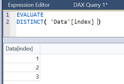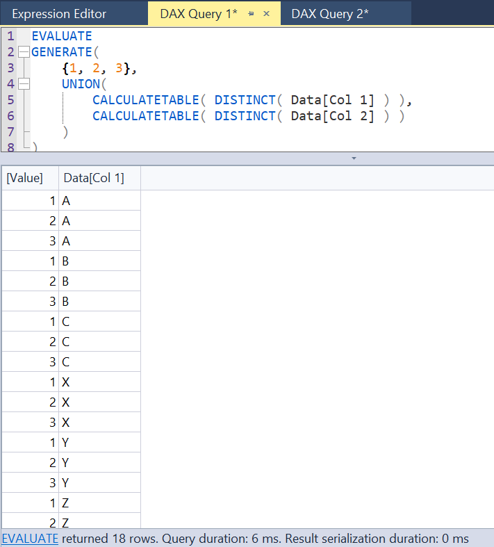 CALCULATETABLE( DISTINCT( Data[Col 1] ) ),