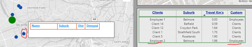 I am using employees instead of a regions and requiring assistance with a formula that shows only the selected employee in the map. The attached image shows non selected employee from the given distance selection