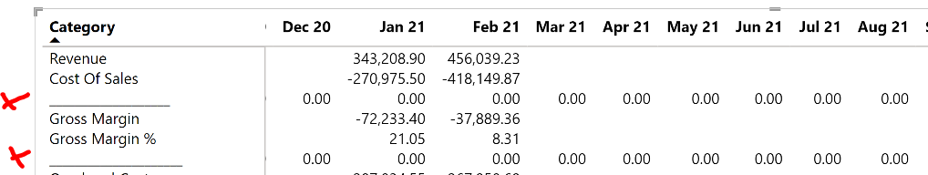 If you want to stick with the native matrix viz, there may be a way to do this by turning the IF statement into a SWITCH(TRUE()) statement, with the first condition of the SWITCH being that if it’s a spacer row to just return a blank. However, to move forward with that, I’ll need your PBIX file to play with since I’m pretty sure that will work, but don’t want to say for certain until i test it.