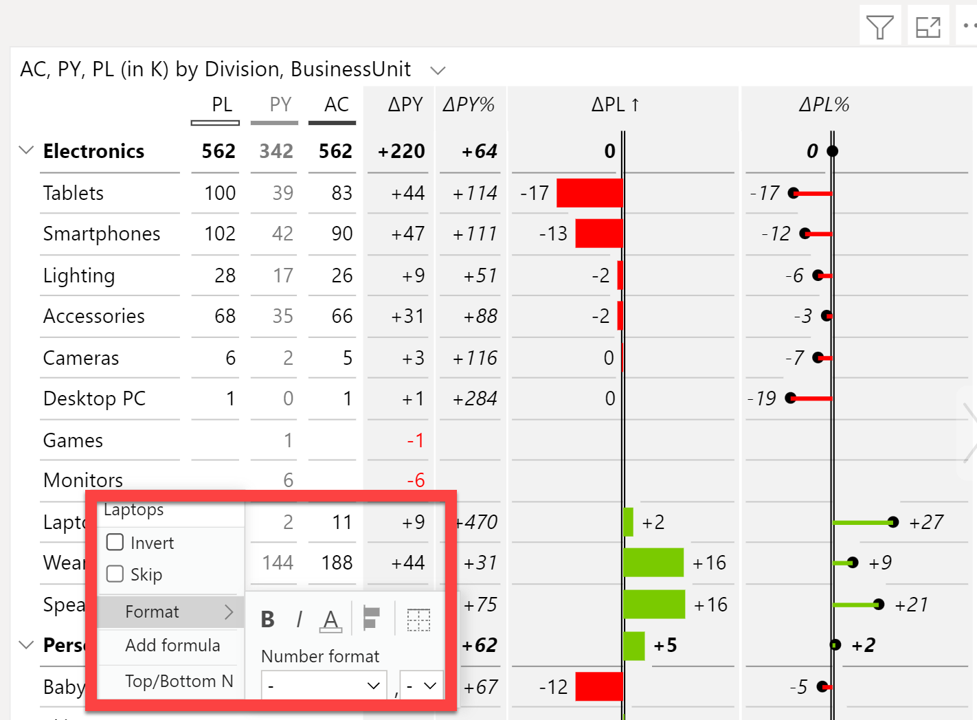 Hmmm…that’s an interesting question. The simplest answer is to use a better matrix visual that allows for more powerful formatting options. For example, Zebra BI Tables has a right click Excel-type format menu that allows you to set those types of seperators as attributes on a real data row, not as the kludgy row insert that the native matrix makes you do.